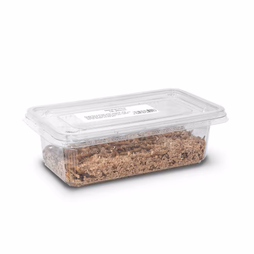 Direct from the UK’s largest breeder packed fresh daily. Mealworms are the larvae of the tenebrio molitar beetle. Their diet is vegetarian which means they are safe to feed animals and birds without passing on the potentially fatal diseases which may be present in offal-fed larvae such as maggots. They are a clean odourless and relatively inexpensive livefood, rich in protein and easy to store. Mealworms are ideal food for garden birds and aviary birds many lizards and other exotic animals.